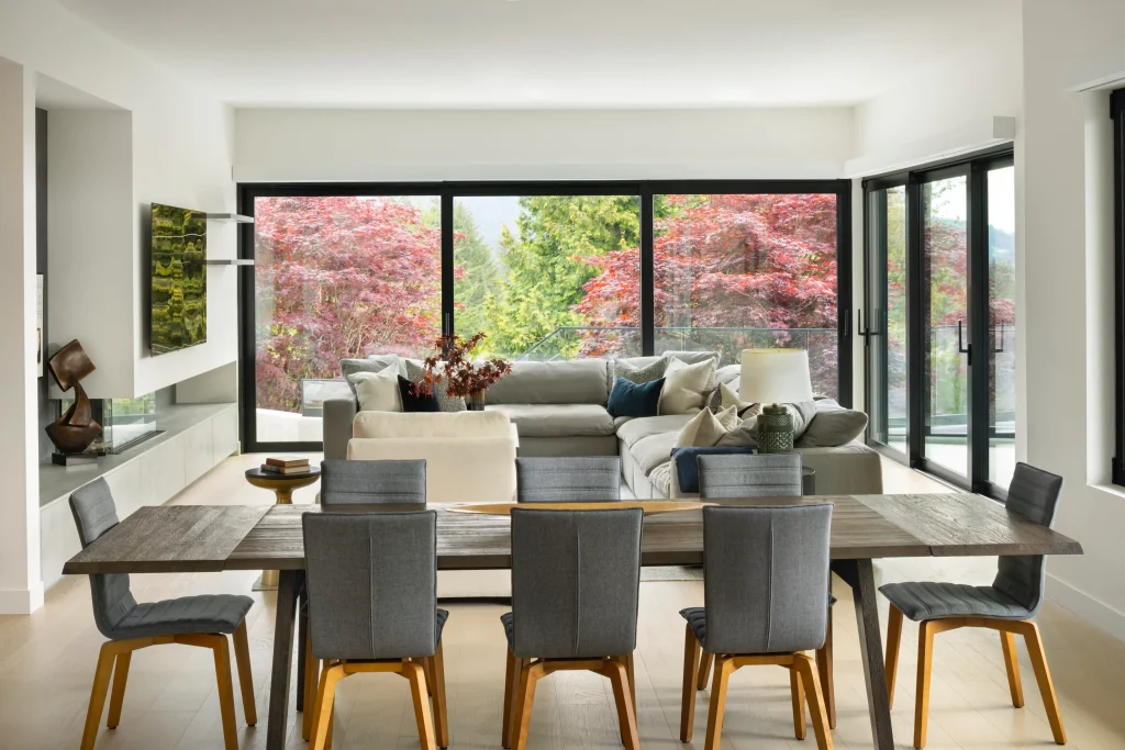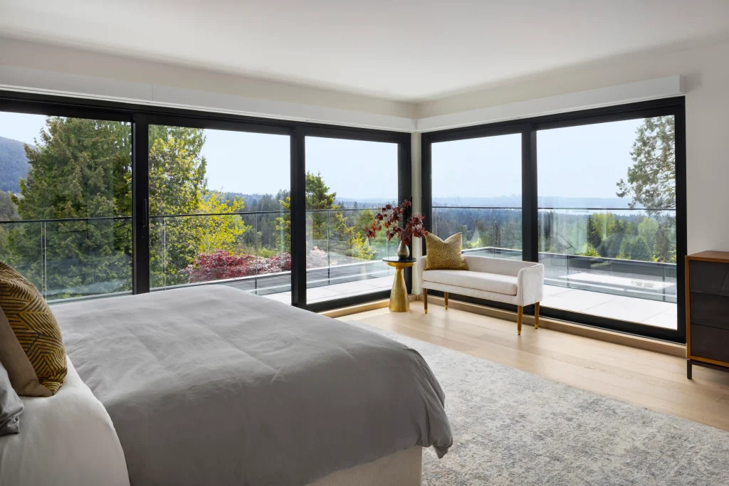 Perched high on a West Vancouver hilltop, this stunning new build captures sweeping mountain and ocean views from every angle. The home’s completely open-concept layout and sleek modern design emphasize light, space, and seamless indoor–outdoor living.
